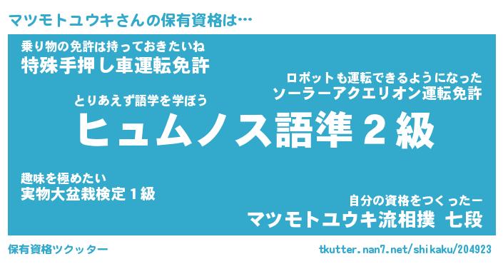 | ツイッター | マツモトユウキさんのツイッターID『namakemono_kun』 |