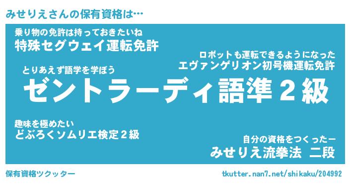 | 肩書あだ名 | 『みせりえ社長令嬢』『みせりえ総理大臣』 |