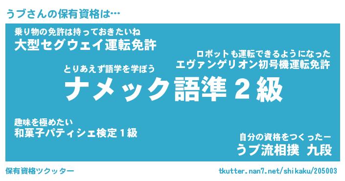 | ヘコむあだ名 | 『うブもー』『酢こんぶ』『うブを』 |