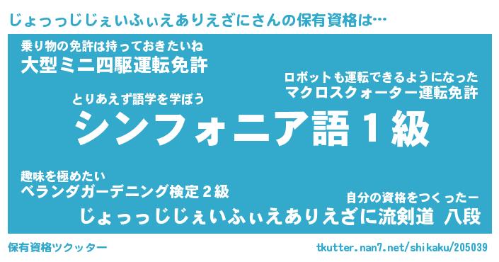 | 女子向けラノベタイトル風あだ名 | 『(仮)じょっっじじぇいふぃえありえざにのやんごとなき事情』 |