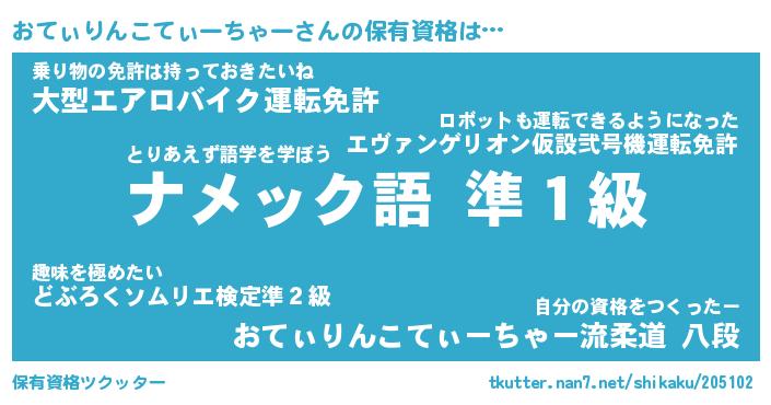 | ツイッター | おてぃりんこてぃーちゃーさんのツイッターID『tsukushi_kun』 |