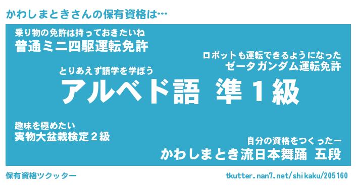 | 肩書あだ名 | 『かわしまとき店長』『かわしまとき班長』 |