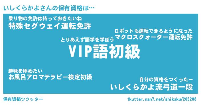 いしくらかよさんの保有資格は… とりあえず語学を学ぼう『 VIP語初級』乗り物の免許は持っておきたいね『特殊セグウェイ運転免許』自分の資格をつくったー『いしくらかよ流弓道一段』 ツクッター #保有資格ツクッター http://tkutter.nan7.net/shikaku/205208/