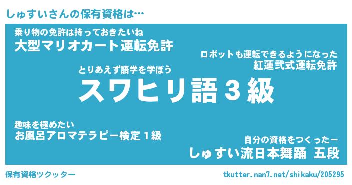 | 意味不明あだ名 | 『ペロリンしゅすい』『永久保存しゅすい』 |