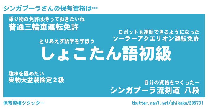 | ヒーロー風カッコイイあだ名 | 『スーパーシンガプーラ』『幻影騎士シン』 |