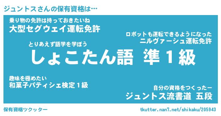 | 肩書あだ名 | 『ジュントス店長』『ジュントス総理大臣』 |