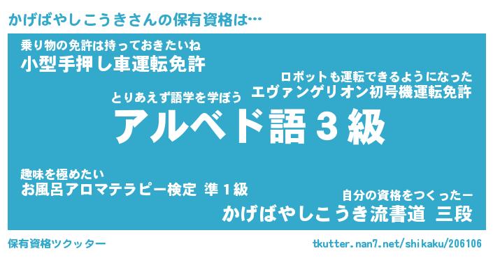 | 自動車の名前っぽいあだ名 | 『カゲティマ』『カクア』『ヴィッカ』 |