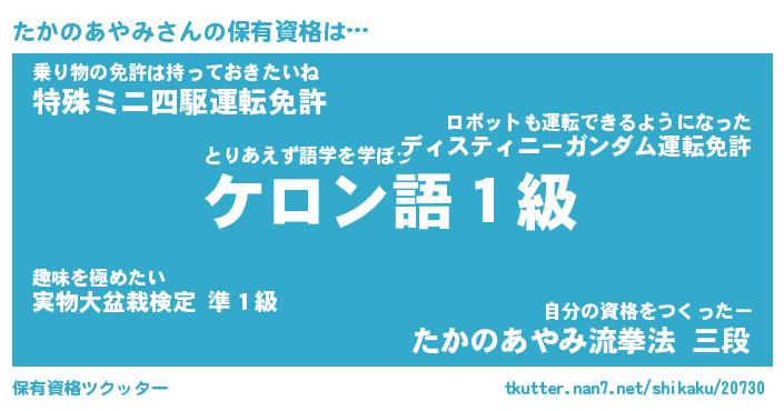 | 女子向けラノベタイトル風あだ名 | 『(仮)たかのあやみのやんごとなき事情』 |