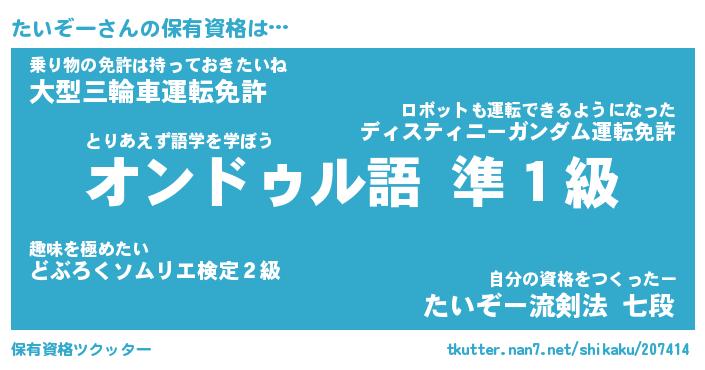 | 意味不明あだ名 | 『ペロリンたいぞー』『永久保存たいぞー』 |