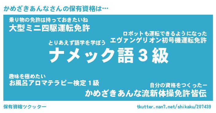 | 胡散臭い通販商品みたいなあだ名 | 『モテモテ間違いなし水晶球…その名も「かめざきあんな」』 |