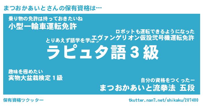 | ツイッター | まつおかあいとさんのツイッターID『dendenmushi_idle』 |