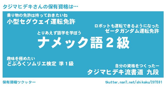 | 肩書あだ名 | 『タジマヒデキCEO』『タジマヒデキ団長』 |