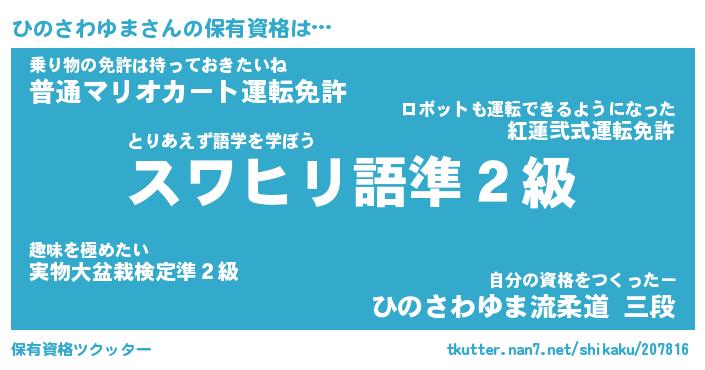 | 伝説のあだ名 | 『伝説のスナイパーひのさわゆま』 |