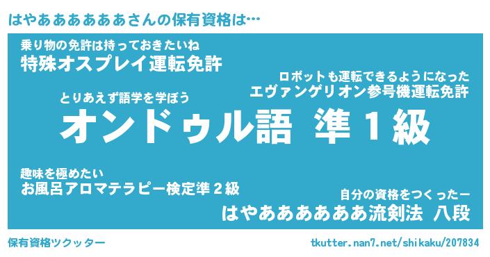 | 自動車の名前っぽいあだ名 | 『ハヤティマ』『ハクア』『ハント』 |