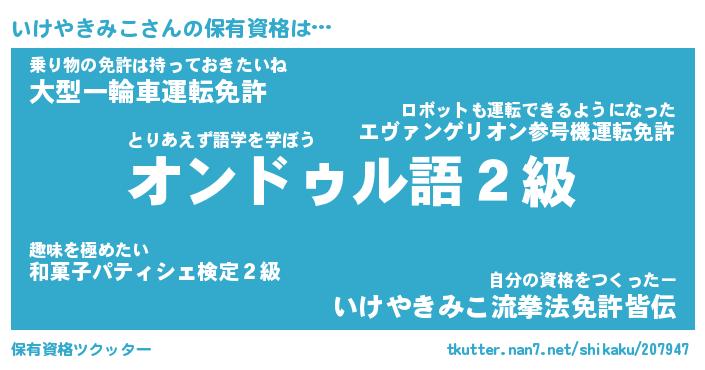| 肩書あだ名 | 『いけやきみこCEO』『いけやきみこ団長』 |