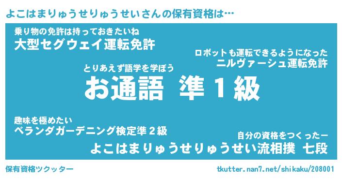 | 女子向けラノベタイトル風あだ名 | 『(仮)よこはまりゅうせりゅうせいのやんごとなき事情』 |