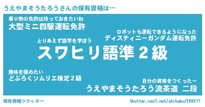 | 胡散臭い通販商品みたいなあだ名 | 『必ず成功する霊験あらたかなお札…その名も「うえやまそうたろう」』 |