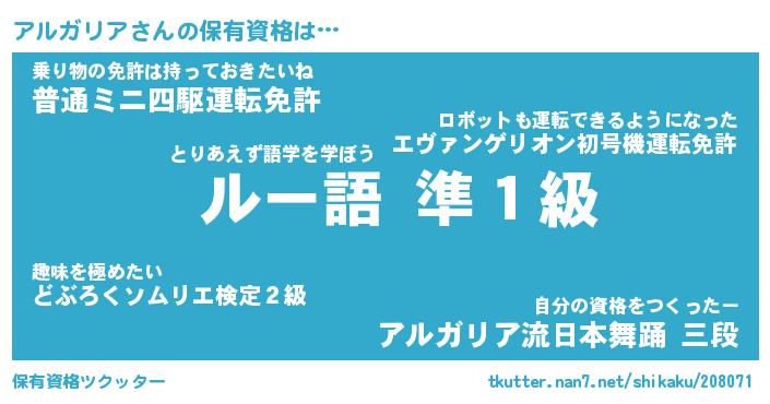 | 肩書あだ名 | 『アルガリア店長』『アルガリア国家主席』 |