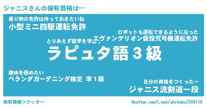 | 意味不明あだ名 | 『ペロリンジャニス』『永久保存ジャニス』 |
