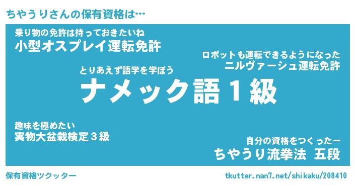 | ファンタジー風あだ名 | 『チヤフェル』『エターナルチヤウリー』 |