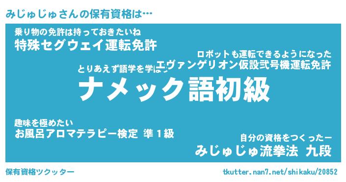 | ファンタジー風あだ名 | 『ミジフェル』『エターナルミジュジュー』 |