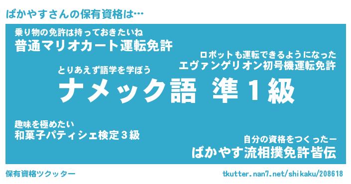 | 欧米人風あだ名 | 『マイケルばかやす』『ウサインばかやす』 |