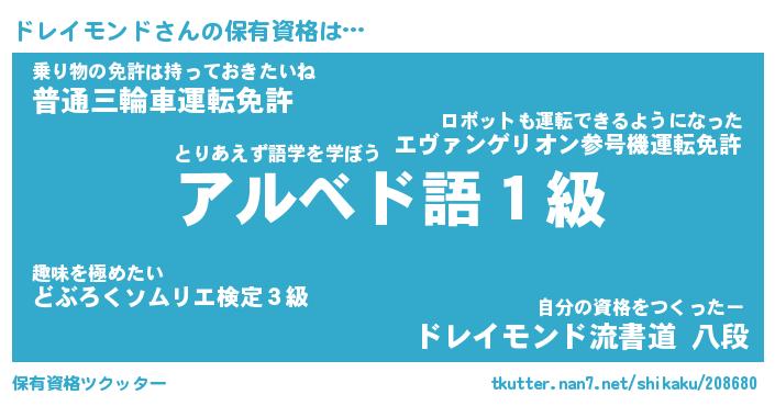 | 料理風あだ名 | 『節約★ドレイモンドと油揚げの玉子丼』 |