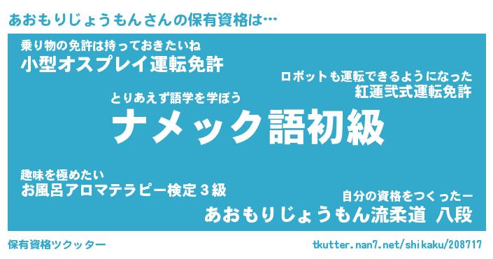 | 女子向けラノベタイトル風あだ名 | 『あおもりじょうもん姫と円卓の騎士』 |