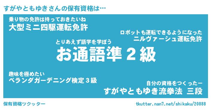 | 胡散臭い通販商品みたいなあだ名 | 『必ず成功する霊験あらたかなお札…その名も「すがやともゆき」』 |