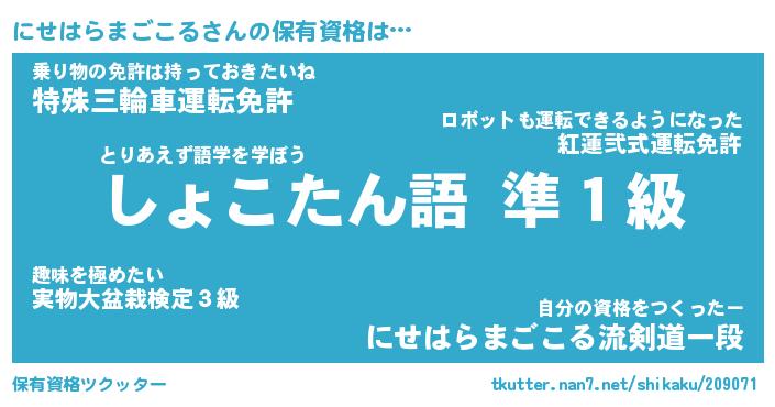 | ヘコむあだ名 | 『にせもー』『豆乳』『にせぷりん』 |