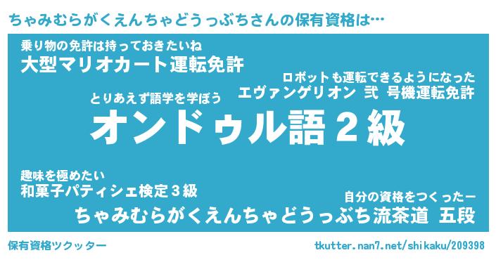 | 肩書あだ名 | 『ちゃみむらがくえんちゃどうっぶちCEO』 |