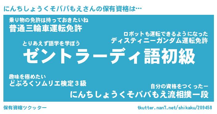 | 料理風あだ名 | 『節約★にんちしょうくそババもえと油揚げの玉子丼』 |