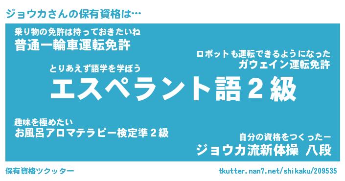 | 肩書あだ名 | 『ジョウカCEO』『ジョウカ総理大臣』 |