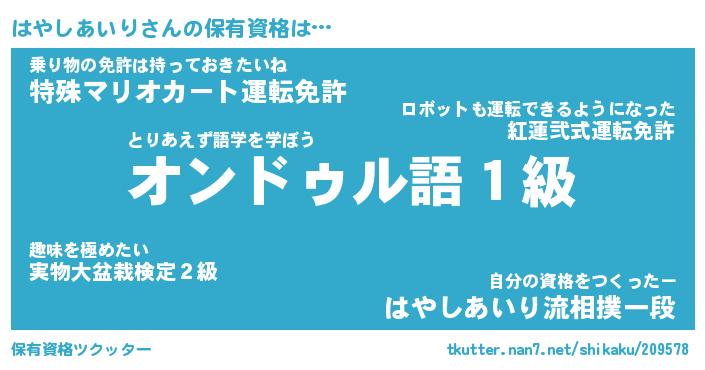| 自動車の名前っぽいあだ名 | 『ハヤティマ』『ハクア』『ヴィッハ』 |
