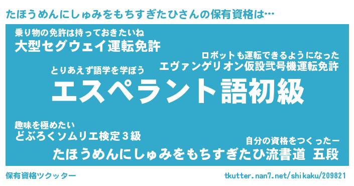 | 男性向けラノベタイトル風あだ名 | 『たほうめんにしゅみをもちすぎたひの憂鬱』 |