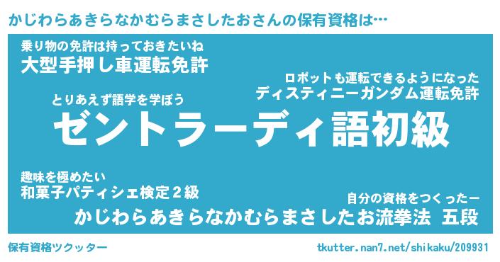 | 肩書あだ名 | 『かじわらあきらなかむらまさしたお御曹司』 |