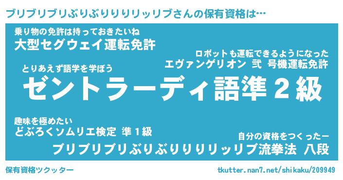 | 男性向けラノベタイトル風あだ名 | 『ブリブリブリぶりぶりりりリッリブの憂鬱』 |