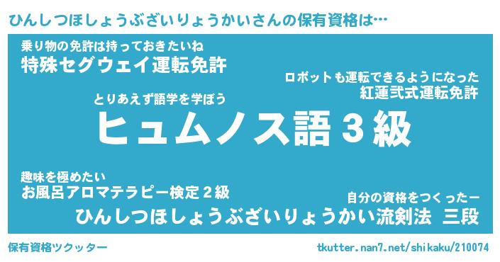 | ツイッター | ひんしつほしょうぶざいりょうかいさんのツイッターID『namakemono_idle』 |