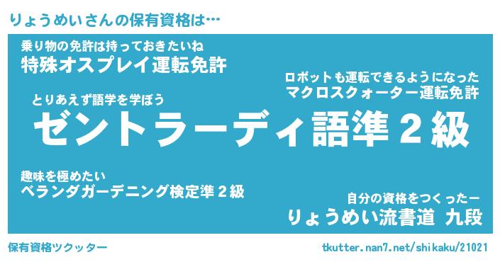 | ファンタジー風あだ名 | 『リョフェル』『エターナルリョウメイー』 |