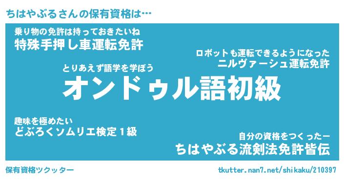 | ヒーロー風カッコイイあだ名 | 『スーパーチハヤブル』『黄金騎士チハ』 |