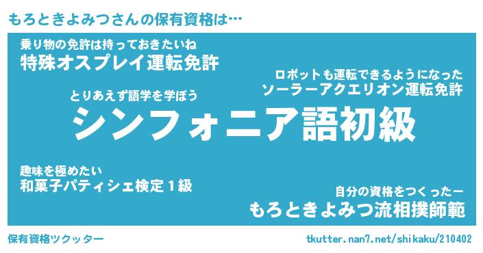 | 胡散臭い通販商品みたいなあだ名 | 『必ず成功する霊験あらたかなお札…その名も「もろときよみつ」』 |