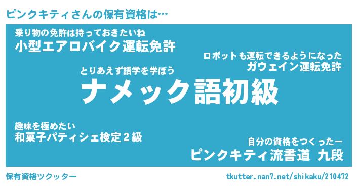 | 料理風あだ名 | 『節約★ピンクキティと油揚げの玉子丼』 |