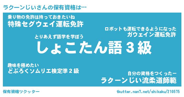 | ツイッター | ラクーンじいさんのツイッターID『namakemono_star』 |
