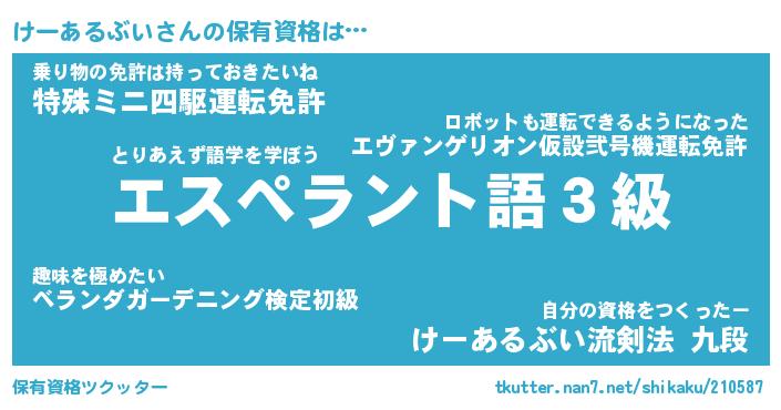 | 伝説のあだ名 | 『伝説の傭兵けーあるぶい』 |
