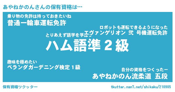 | 伝説のあだ名 | 『不死鳥のスナイパーあやねかのん』 |