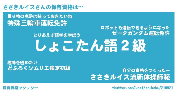 | ヒーロー風カッコイイあだ名 | 『スーパーササキルイス』『魔戒騎士ササ』 |