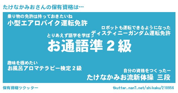 | 胡散臭い通販商品みたいなあだ名 | 『必ず成功する霊験あらたかなお札…その名も「たけなかみお」』 |