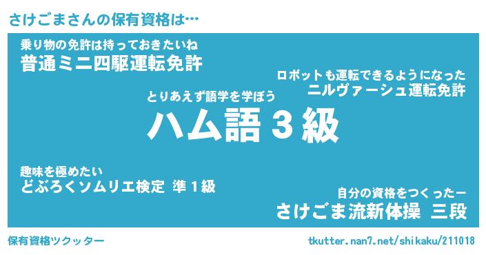 | 欧米人風あだ名 | 『マイケルさけごま』『ウサインさけごま』 |