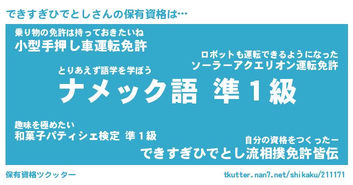 | 料理風あだ名 | 『節約★できすぎひでとしと油揚げの玉子丼』 |