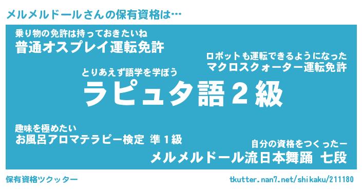 | 料理風あだ名 | 『節約★メルメルドールと油揚げの玉子丼』 |